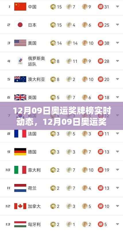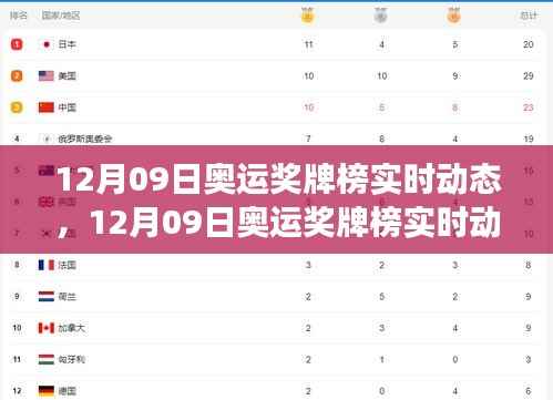 全球奥运奖牌榜实时动态,回顾荣耀瞬间,展望前景展望(12月09日版)