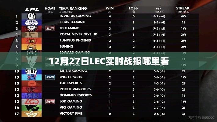 随着电子竞技的飞速发展,各大赛区举办的比赛成为了众多游戏爱好者的焦点,英雄联盟欧洲赛区(LEC)的比赛更是吸引了无数粉丝的关注,对于许多玩家来说,能够实时观看比赛的战报成为了了解赛事动态、支持喜爱战队的重要途径,本文将介绍如何观看12月27日的LEC实时战报。