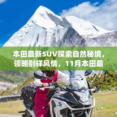 十一月,正是秋高气爽的好时节,驾驶本田最新SUV踏上旅程,沿途的美景定会让你流连忘返,无论是金黄的落叶、宁静的湖泊,还是巍峨的山脉,都是大自然的馈赠,这款SUV将带你穿越城市的喧嚣,直达大自然的怀抱。